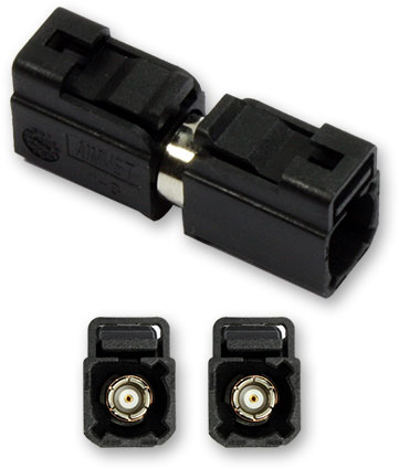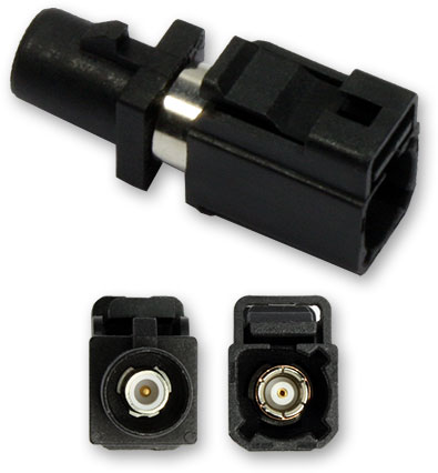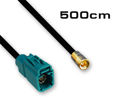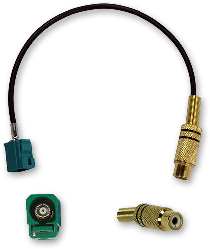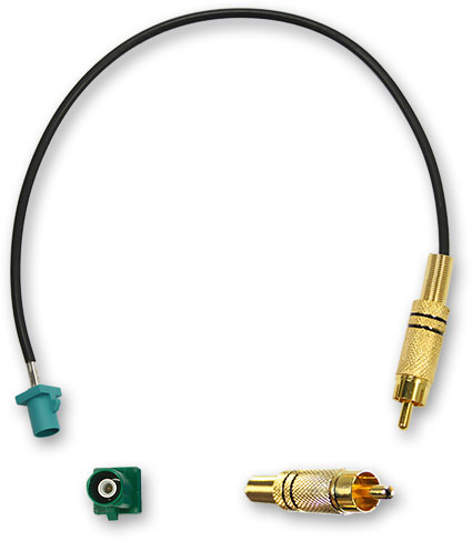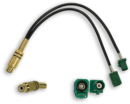 Adaptor cable Fakra male (green) on RCA male (gold).