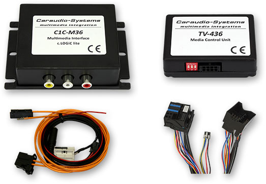 This interface allows for the connection of external video source (e.g. DVD Player, DVB-T Tuner). The connected video source is controlled via the navigation unit buttons. Additionally, the interface provides automatic rear view camera switching and an S-connection for the video source.