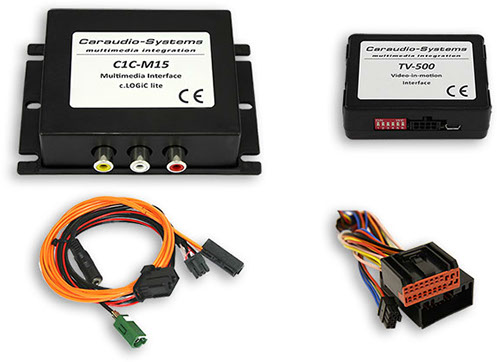 This interface allows for the connection of external video source (e.g. DVD Player, DVB-T Tuner). The connected video source is controlled via the navigation unit buttons. Additionally, the interface provides automatic rear view camera switching and an S-connection for the video source.