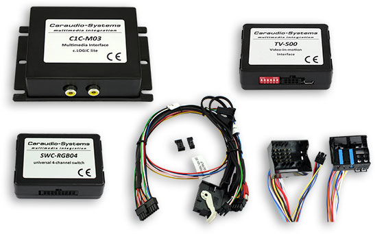 This interface allows for the connection of external video source (e.g. DVD Player, DVB-T Tuner). The connected video source is controlled via the navigation unit buttons. Additionally, the interface provides automatic rear view camera switching and an S-connection for the video sources.