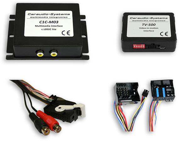 This interface allows for the connection of external video source (e.g. DVD Player, DVB-T Tuner). The connected video source is controlled via the navigation unit buttons. Additionally, the interface provides automatic rear view camera switching and an S-connection for the video sources.