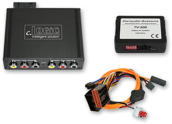This interface allows for the connection of external video sources (e.g. DVD Player, DVB-T Tuner). The connected video sources is controlled via the navigation unit buttons. Additionally, the interface provides automatic rear view camera switching and an S-connection for the video sources.