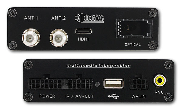 Diversity DVB-T Tuner mit USB Anschluss und Multimedia Interface in einem Gehäuse. Durch den “Plug & Play” Kabelsatz ist der Anschluss an das Navigationsystem sehr einfach. Die Steuerung des DVB-T Tuners und der USB Multimedia Ebene erfolgt direkt über die Navigationstasten. Ein weiteres Feature ist die Möglichkeit von Anschluss einer weiteren Videoquelle (z.B. DVD Player) inkl. Steuerung über die Tasten der Navigationseinheit. Zusätzlich beinhaltet das Interface einen Rückfahrkamera Videoeingang und liefert einen S-Kontakt für die Videoquelle.