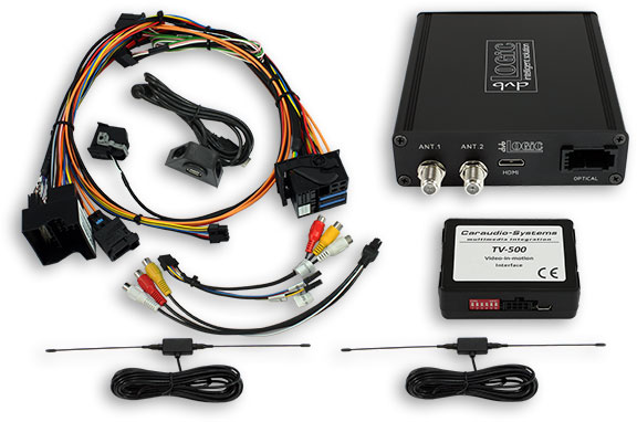 Diversity DVB-T Tuner with USB port and multimedia interface in one casing. The Plug & Play cable kit allows for easy connection to the navigation unit. The Tuner and the USB multimedia level functions are controlled via the navigation buttons. The interface also supports the connection of an additional video source (e.g. DVD Player). Additionally, the interface provides an S-connection for the video source.